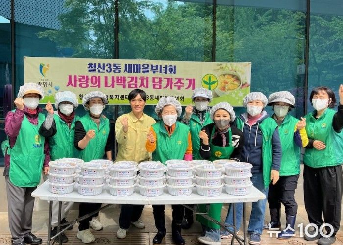 뉴스100 김동초 기자 | 광명시 철산3동 새마을부녀회는 21일 철산3동 행정복지센터 앞마당에서 ‘사랑의 열무김치 나눔 행사’를 열었다.