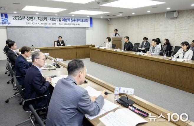 뉴스100 김동초 기자 | 수원특례시는 21일 시청 상황실에서 김현수 제1부시장 주재로 상반기 징수대책보고회를 열고, 징수 부서별 징수목표액과 징수 상황을 점검했다.