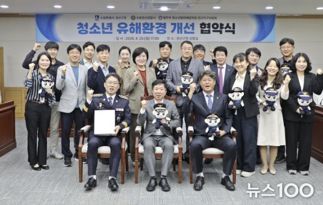 뉴스100 김동초 기자 | 수원시 권선구는 지난 20일, 수원권선경찰서, 법무부 청소년 범죄예방위원 권선지구위원회와 함께 청소년 유해환경 개선을 위한 업무협약을 체결하고, '아름드리 동행' 장학금 전달식을 개최했다.