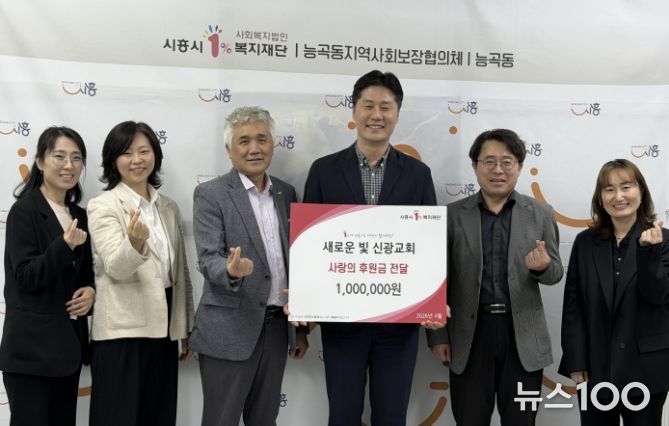 뉴스100 김동초 기자 | 시흥시 능곡동은 지난 4월 22일 새로운 빛 신광교회로부터 지역사회 취약계층 지원을 위한 후원금 100만 원을 시흥시1%복지재단을 통해 전달받았다.