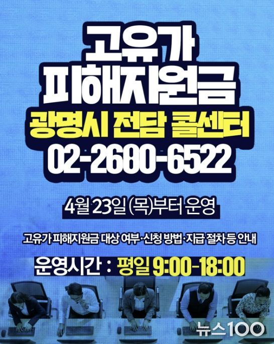 뉴스100 김동초 기자 | 광명시가 ‘고유가 피해지원금’ 지급 관련 민원에 신속히 대응하고자 전담 콜센터를 23일 오전 9시부터 운영한다.