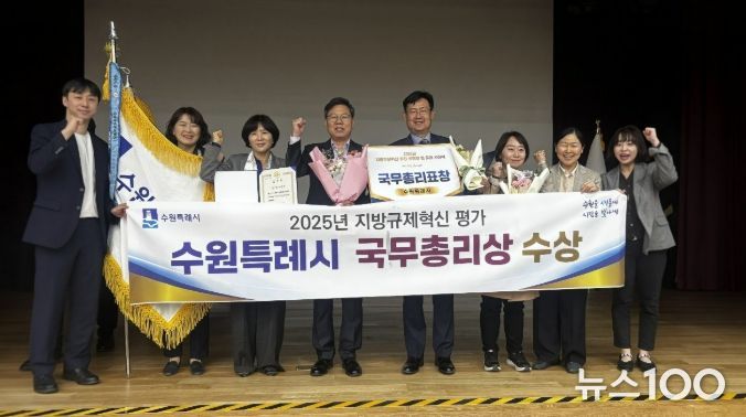뉴스100 김동초 기자 | 수원특례시가 행정안전부 주관 ‘2025년도 지방규제개혁 유공’ 평가에서 규제개혁 성과를 인정받아 국무총리 기관 표창을 받았다. 시상식은 22일 정부세종청사에서 열렸다. 수원시는 개인 표창도 받았다.