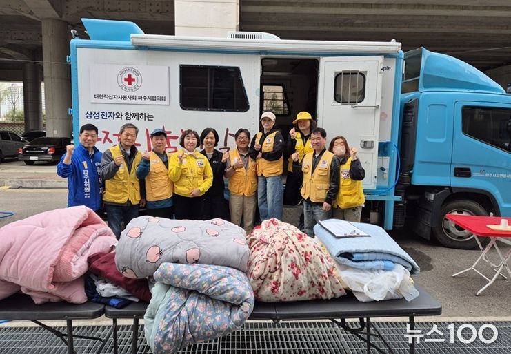 뉴스100 김동초 기자 | 파주시 금촌1동은 지난 22일 관내 취약계층을 대상으로 파주시 자원봉사센터와 함께 이불 빨래를 지원하는 ‘사랑의 이동 세탁 봉사’활동을 실시했다.