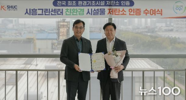 뉴스100 김동초 기자 | 시흥도시공사는 지난 4월 21일 도시재생안전협회로부터 시흥그린센터 ‘친환경 시설물 저탄소’ 인증을 획득하고 인증식을 진행했다고 밝혔다. 이번 성과는 기관 단위가 아닌, 전국 환경기초시설 중 최초로 ‘시설물 단위 사업장’의 저탄소 인증을 받은 사례로, 환경 분야의 새로운 이정표를 세웠다는 평가를 받고 있다.