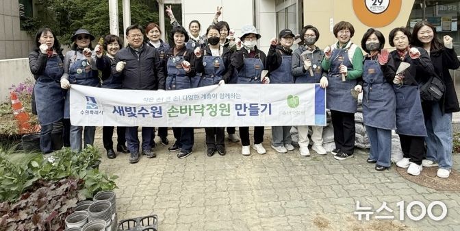 뉴스100 김동초 기자 | 수원시 영통구 영통1동은 지난 4월 22일 주민과 지역 단체가 함께 참여하는 ‘손바닥정원 조성 행사’를 개최했다. 이번 행사는 지난 정원 조성 활동에 대한 주민들의 높은 관심과 참여를 바탕으로 다시 추진됐다.