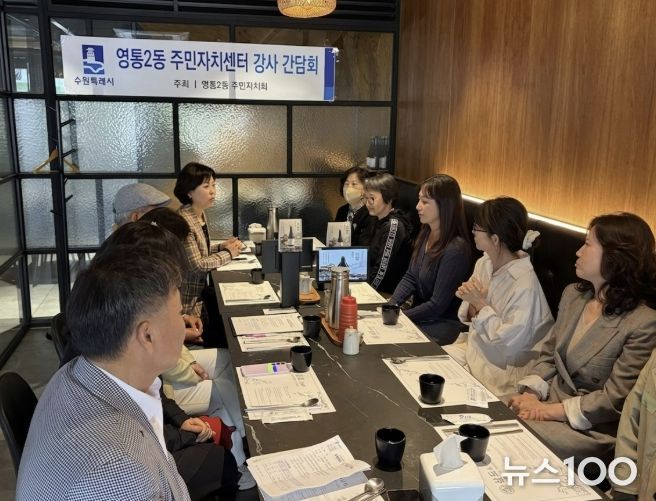뉴스100 김동초 기자 | 수원시 영통구 영통2동은 지난 22일 영통2동 주민자치회가 주민자치센터 프로그램 운영과 관련한 다양한 의견을 수렴하고, 보다 내실 있는 운영과 활성화 방안을 모색하기 위해 주민자치센터 프로그램 강사진과의 간담회를 개최했다고 밝혔다.