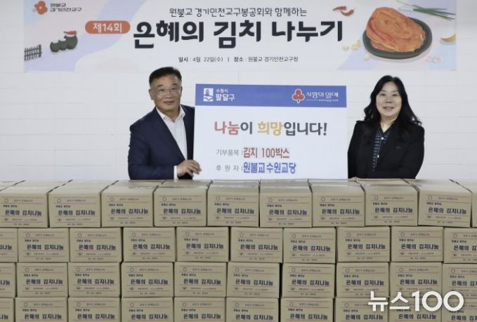 뉴스100 김동초 기자 | 수원시 팔달구은 원불교 수원교당으로부터 지난 22일, 김치 100박스를 기부받았다고 밝혔다.