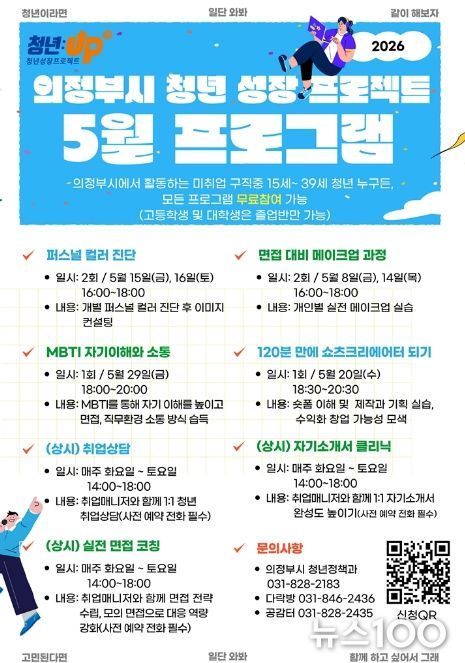 뉴스100 김동초 기자 | 의정부시는 미취업 청년의 취업 준비 역량 강화를 위해 ‘청년성장프로젝트’ 5월 프로그램을 운영한다.