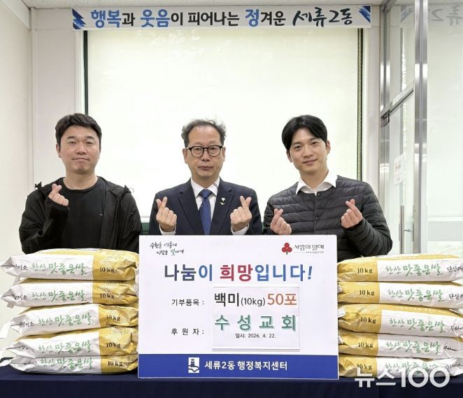 세류2동 변영호 동장은 “매년 잊지 않고 사랑 나눔을 실천해 주신 수성교회에 감사드리며, 앞으로도 민·관 협력을 통해 행복과 웃음이 피어나는 정겨운 세류2동을 만들어가겠다”고 말했다.