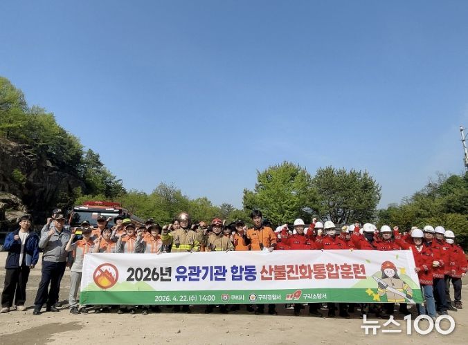 뉴스100 김동초 기자 | 구리시는 산불 발생 시 신속하고 체계적인 대응능력 강화를 위해 지난 4월 22일 고구려대장간마을 주차장에서 ‘2026년 유관기관 합동 산불 진화 통합훈련’을 실시했다고 밝혔다.
