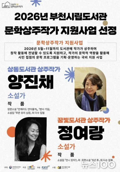 뉴스100 김동초 기자 | 부천시립상동도서관과 꿈빛도서관은 문화체육관광부가 주관하고 한국문화예술위원회가 주최하는 ‘2026년 도서관 상주작가 지원사업’ 공모에 선정돼 5월부터 시민 대상 문학 프로그램을 운영한다.