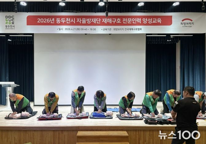 뉴스100 김동초 기자 | 동두천시는 지난 21일 평생학습관 한울림공연장에서 ‘자율방재단 재해구호 교육’을 실시했다.