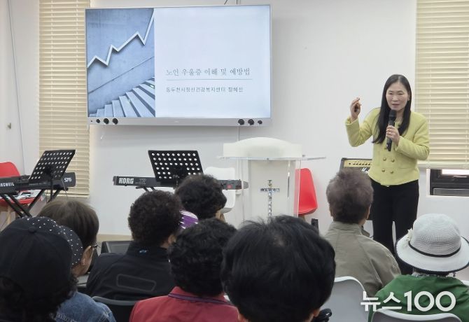 뉴스100 김동초 기자 | 동두천시정신건강복지센터는 지난 22일 동두천성결교회에서 어르신 40여 명을 대상으로 성인 정신건강교육 ‘노인 우울증 이해 및 예방법’을 실시했다.