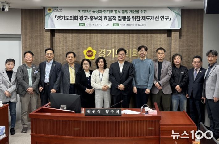 뉴스100 김동초 기자 | 경기도의회 의회운영연구회(위원장 양우식)는 지난 22일 의회운영위원회 회의실에서 '경기도의회 광고·홍보의 효율적 집행을 위한 제도개선 연구' 용역 중간보고회를 개최했다.