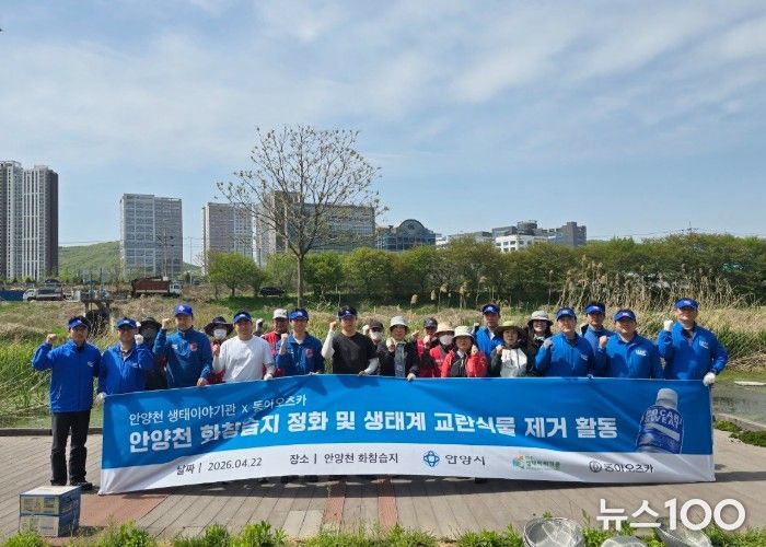뉴스100 김동초 기자 | 안양시는 ‘지구의 날’인 22일 동아오츠카와 함께 석수동 일대 안양천의 화창습지에서 환경 정화 활동을 펼쳤다고 23일 밝혔다.