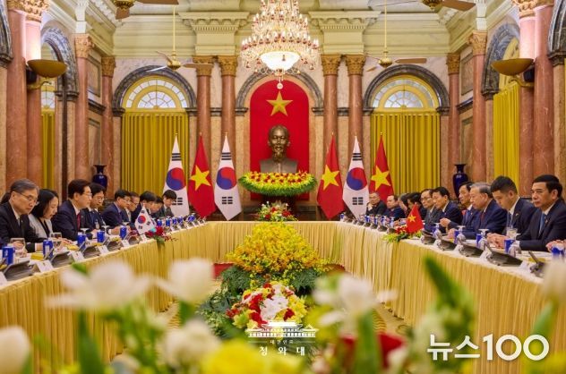 뉴스100 김동초 기자 | 베트남을 국빈 방문 중인 이재명 대통령은 22일(현지시간) 오후 베트남 국가주석궁에서 또 럼 당서기장 겸 국가주석과 정상회담을 갖고, 양국 간 포괄적 전략 동반자 관계 발전 방안과 지역·국제 정세 등에 대해 심도 있게 논의했다고 이규연 청와대 홍보소통수석이 서면 브리핑했다.