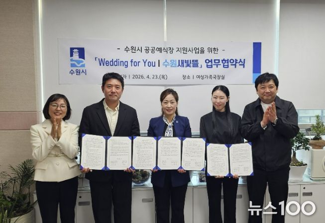 뉴스100 김동초 기자 | 수원특례시가 결혼 전문 협력업체와 협약을 체결하고, 예비부부의 결혼 부담을 줄이기 위해 협력하기로 했다.