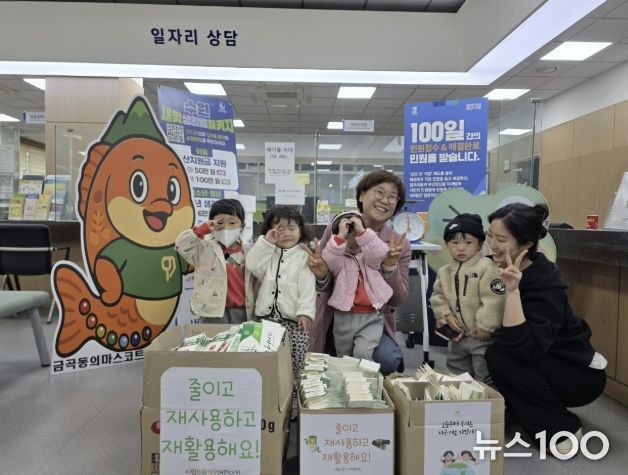 뉴스100 김동초 기자 | 수원시 권선구 금곡동 행정복지센터는 지난 22일 오전 10시, 행정복지센터 민원실에서 시립수원가온어린이집 원생 10여 명이 참여한 ‘금곡이가 알려주는 재활용 놀이터’ 체험 행사를 진행했다고 밝혔다.