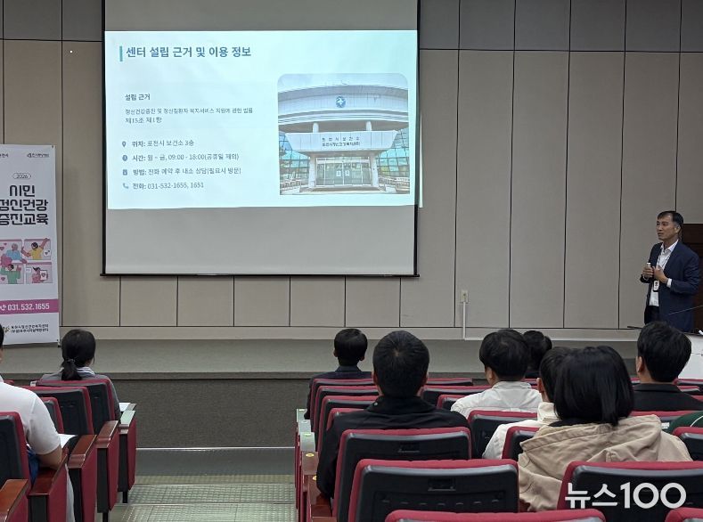 뉴스100 김동초 기자 | 포천시정신건강복지센터는 지난 23일 경기대진테크노파크 종합지원센터 1층 소강당에서 임직원 60여 명을 대상으로 ‘시민정신건강증진교육’을 실시했다.