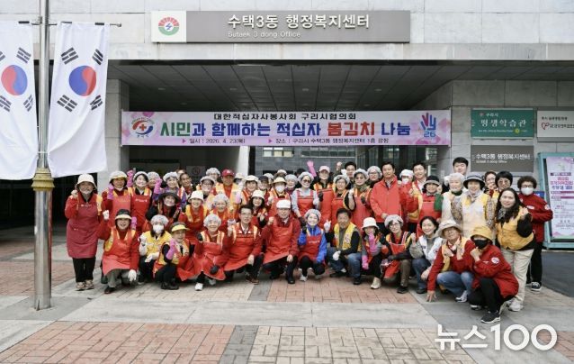 뉴스100 김동초 기자 | 대한적십자사봉사회 구리시협의회는 지난 23일 수택3동 행정복지센터 1층 광장에서 '2026년 시민과 함께하는 적십자 봄김치 나눔’행사를 실시했다고 밝혔다.