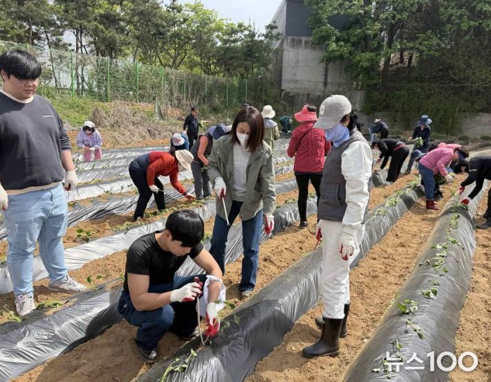뉴스100 김동초 기자 | 오산시 남촌동 통장협의회는 지난 23일 화성시 효행구 정남면 고지리 일원 약 320평 규모의 밭에서 어려운 이웃을 돕기 위한 ‘사랑의 고구마 심기’ 행사를 진행했다고 밝혔다.