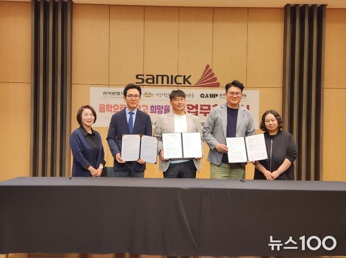 뉴스100 김동초 기자 | 삼익문화재단, 사단법인 마을과사람들, 경기안성뮤직플랫폼은 지난 17일 서울 삼익악기 본사에서 ‘아동·청소년 문화예술교육 협력’을 위한 업무협약(MOU)을 체결했다고 밝혔다.