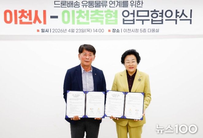 뉴스100 김동초 기자 | 이천시는 23일 이천축산업협동조합(이하 이천축협)과 ‘드론배송 유통물류 연계를 위한 업무협약’을 체결했다.