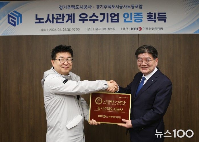 뉴스100 김동초 기자 | 경기주택도시공사(GH)가 상호 신뢰와 존중의 건강한 노사관계 구축을 인정받아 ‘2026 노사관계 우수기업’ 인증을 최초로 획득했다고 24일 밝혔다.