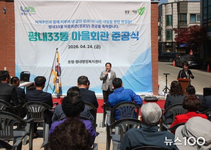 뉴스100 김동초 기자 | 남양주시는 24일 평내동 588-19번지 일원에서 평내33통 마을회관 재건축사업 준공식을 개최했다고 밝혔다.