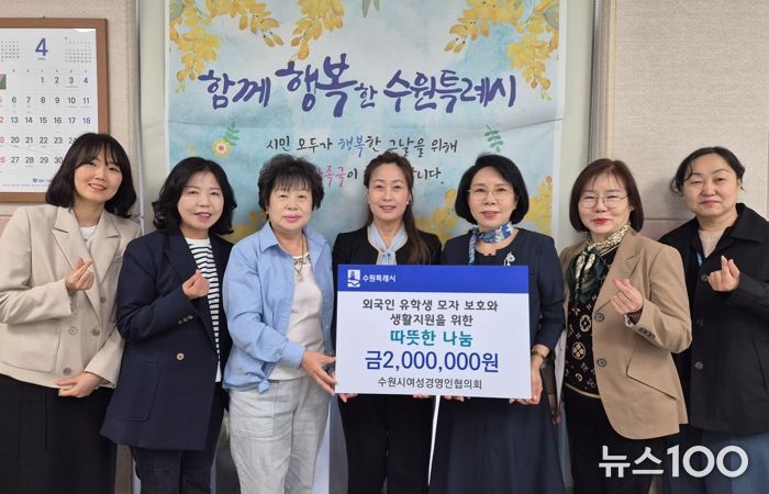 뉴스100 김동초 기자 | 수원시 여성경영인협의회는 “한국으로 유학 온 뒤 미혼모로 출산한 외국인 유학생과 신생아의 안정적인 생활을 돕는 데 사용해 달라”며 24일 수원시에 200만 원을 전달했다.