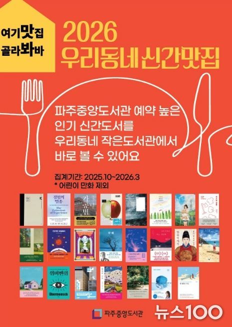 뉴스100 김동초 기자 | 파주시 중앙도서관은 지역 내 작은도서관 활성화를 위해 2024년부터 추진해 온 '우리동네 신간맛집' 사업을 지난 23일부터 관내 13개 작은도서관과 함께 본격 운영하고 있다.