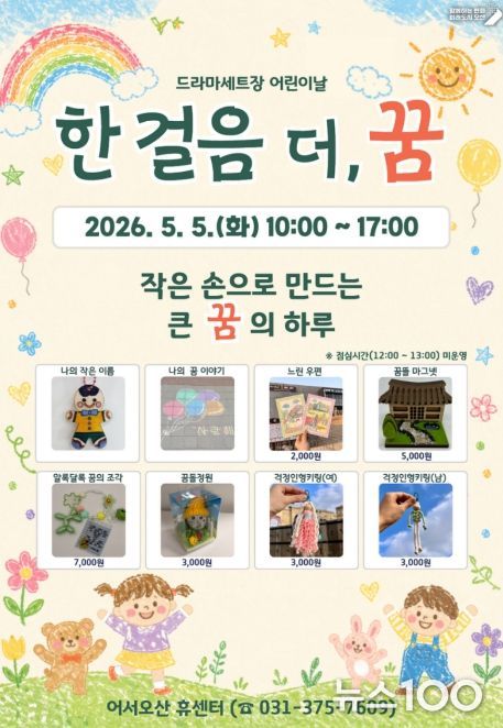 뉴스100 김동초 기자 | 오산시는 오는 5월 5일 어린이날을 맞아 오산 드라마세트장 일원에서 어린이와 가족이 함께 즐길 수 있는 체험 프로그램 ‘한 걸음 더, 꿈’을 운영한다고 밝혔다.