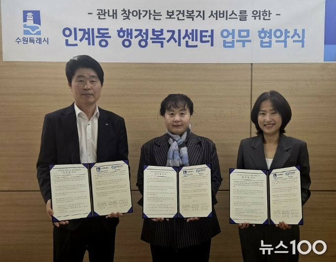 뉴스100 김동초 기자 | 수원시 팔달구 인계동은 지난 24일, 지역사회보장협의체과 한전MCS(주) 경기지사 및 직할지점과 함께 취약계층 발굴과 지속적인 인적안전망 활동 참여를 위한 업무 협약을 체결했다.