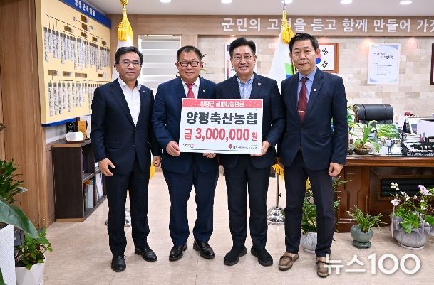 뉴스100 김동초 기자 | 양평군은 지난 23일 양평축산농협이 취약계층을 위한 해피나눔성금 300만 원을 기탁했다고 밝혔다.