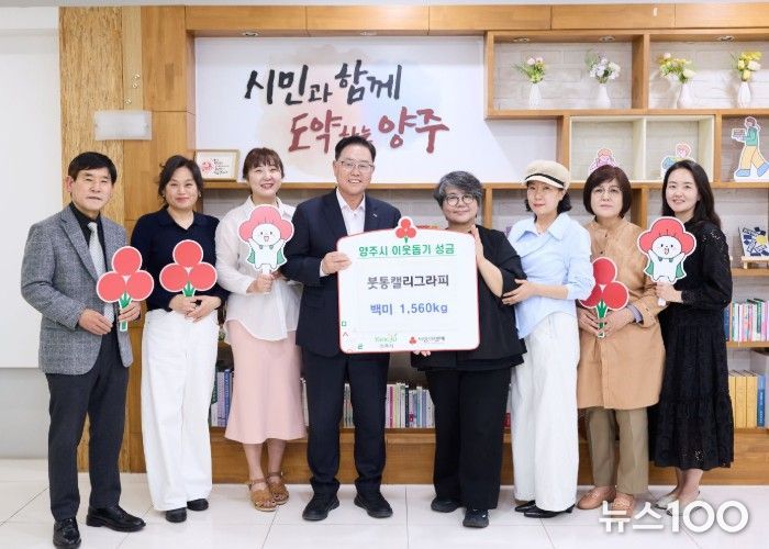뉴스100 김동초 기자 | 양주시는 지난 24일 시장실에서 붓통캘리그라피로부터 이웃돕기 성품으로 백미 1,560kg을 기탁받았다고 밝혔다.