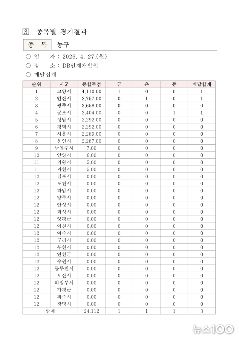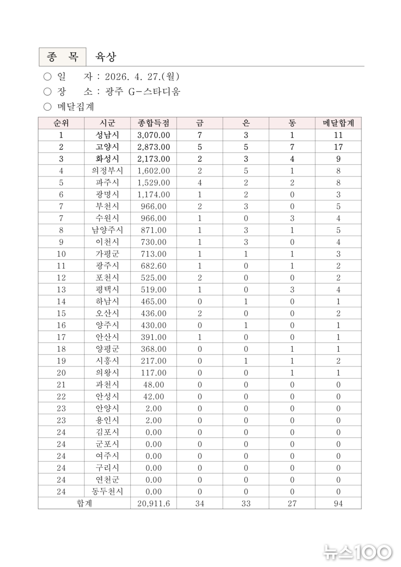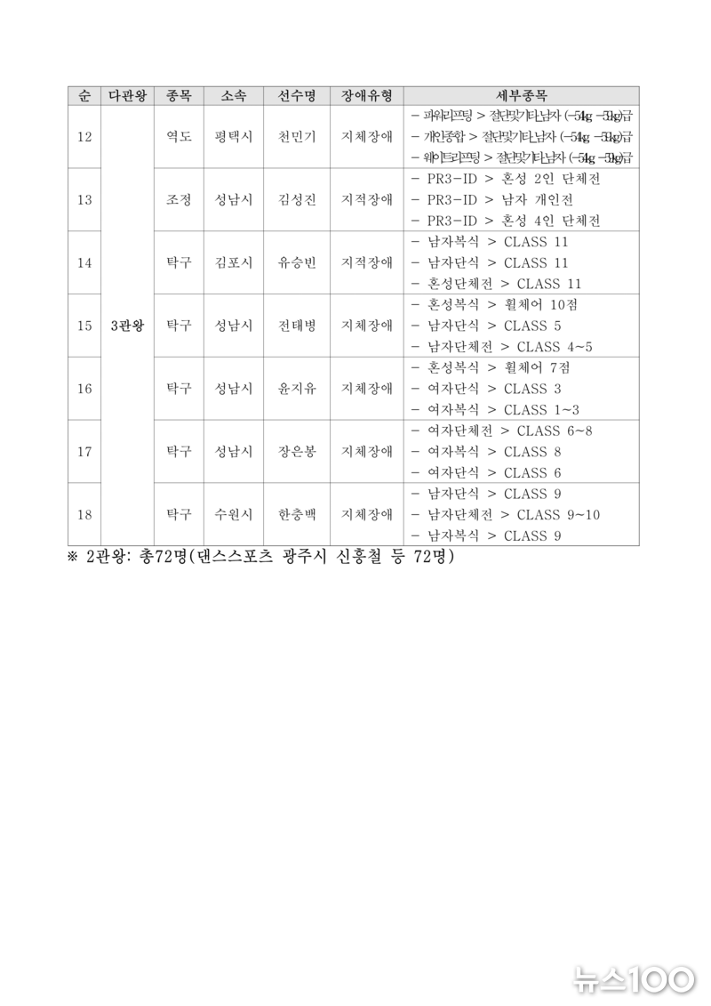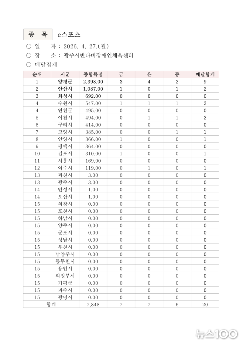 ‘제16회 경기도장애인체육대회 2026 광주’ 『2일차』 경기결과