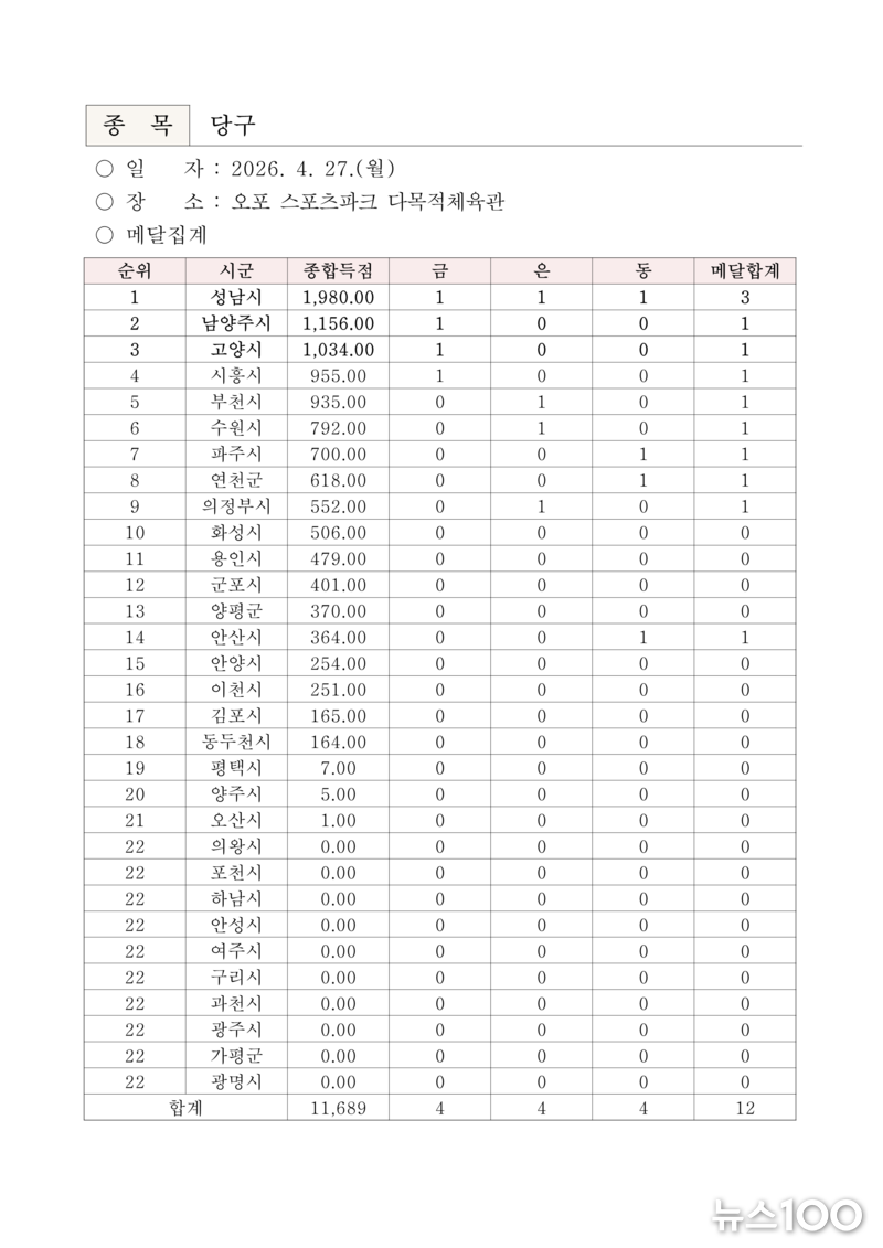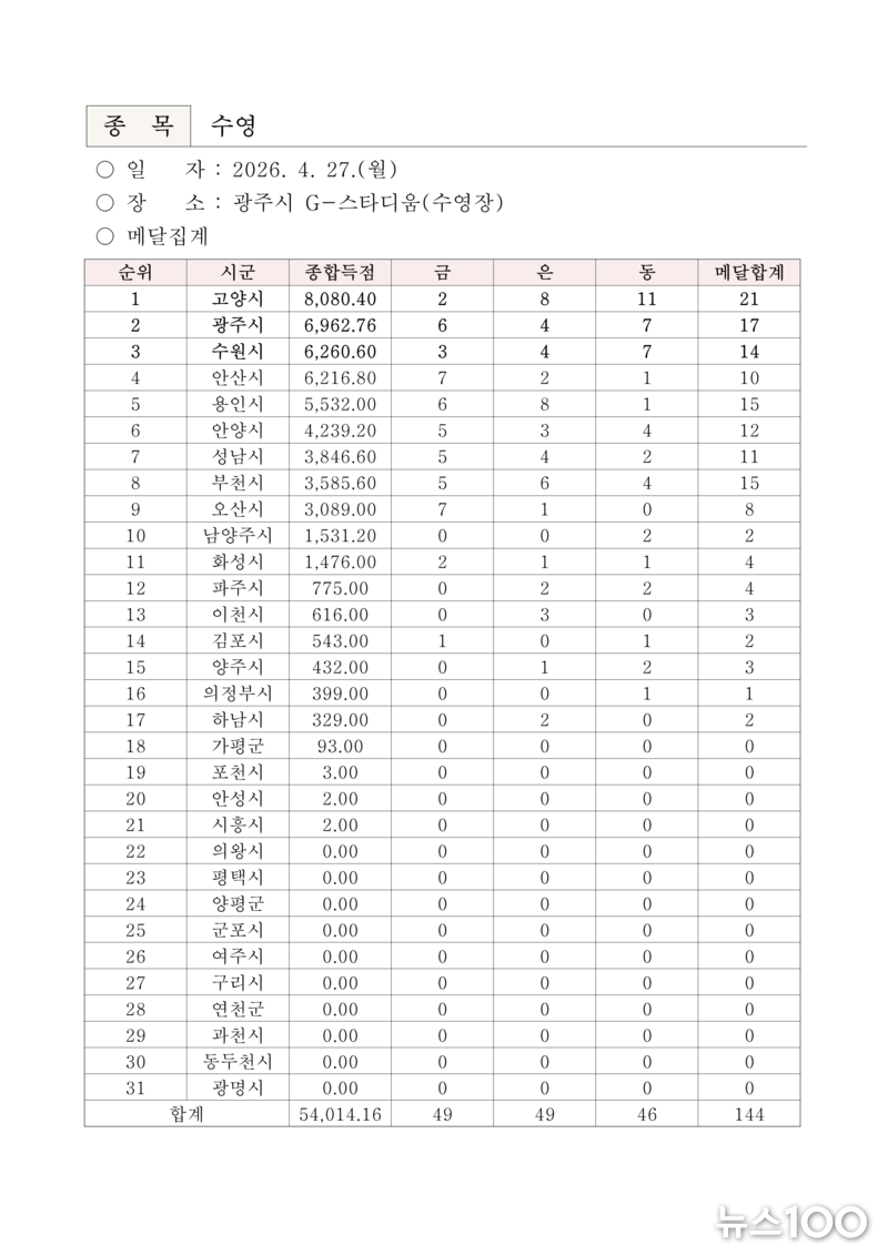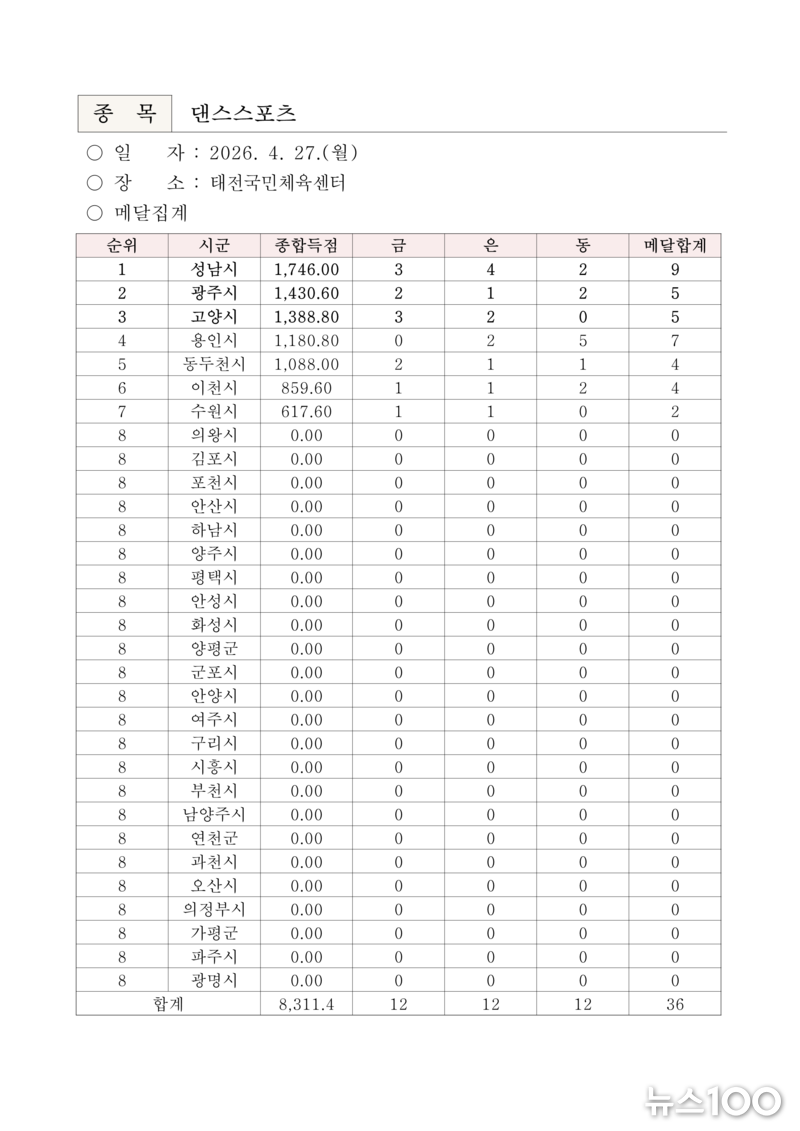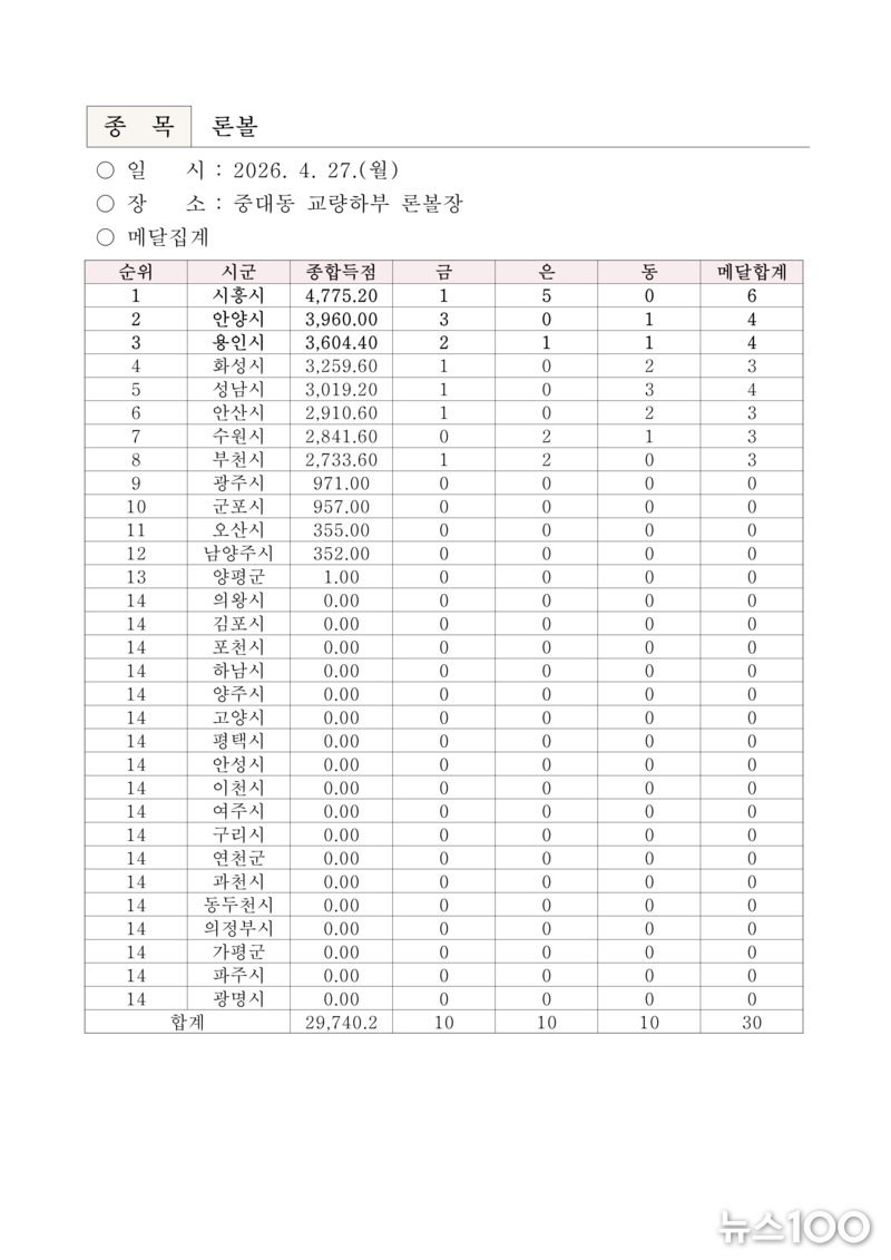 ‘제16회 경기도장애인체육대회 2026 광주’ 『2일차』 경기결과