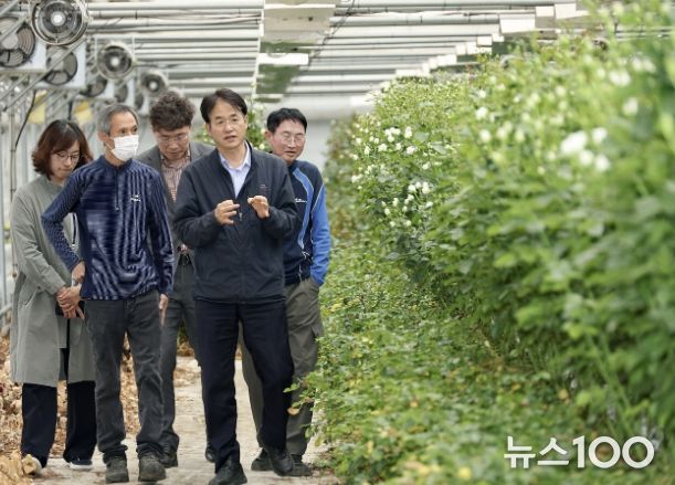 뉴스100 김동초 기자 | 고양특례시는 이동환 시장이 지난 27일 일산서구 구산동의 장미 재배 농가를 방문했다고 28일 밝혔다.