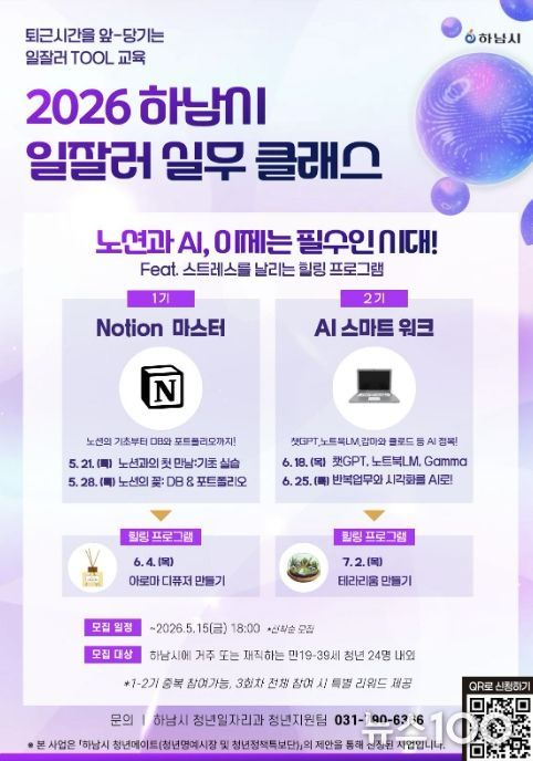 뉴스100 김동초 기자 | 하남시는 관내 청년들이 현장에서 바로 활용할 수 있는 실무 역량을 키우고 또래 청년 간 교류 기회를 확대하기 위해 오는 5월부터 ‘2026년 하남시 일잘러 실무클래스’를 운영하고 1기와 2기 참여자를 모집한다고 밝혔다.