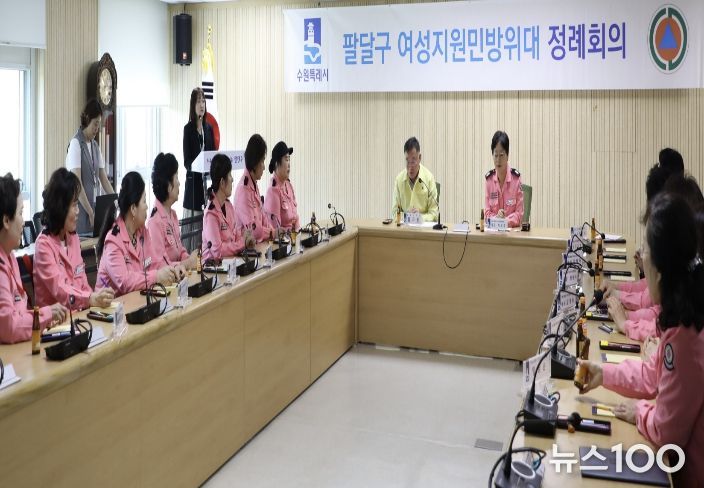 뉴스100 김동초 기자 | 수원시 팔달구는 지난 27일, 팔달구청 상황실에서 여성지원민방위대 4월 정례회의를 개최했다.
