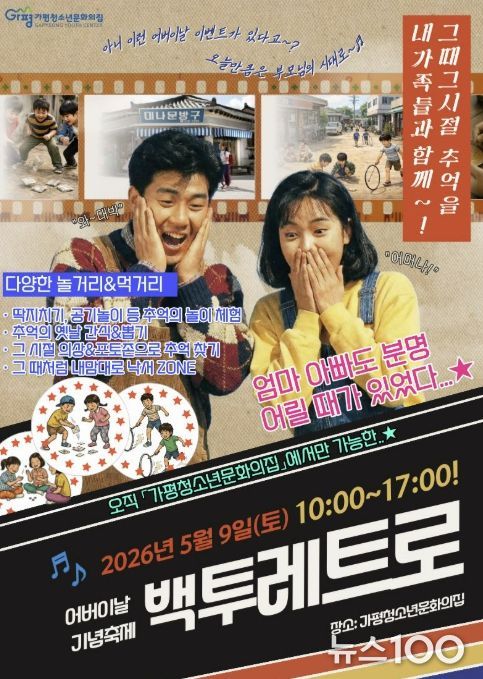 뉴스100 김동초 기자 | 가평청소년문화의집이 어버이날을 앞두고 5월 9일 세대 간 공감과 소통을 위한 체험형 프로그램 ‘어버이날: 백투레트로’를 운영한다.