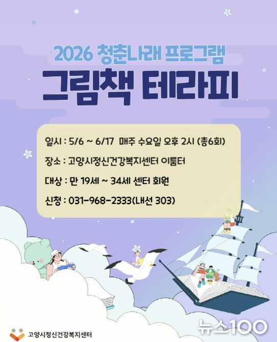 뉴스100 김동초 기자 | 고양시정신건강복지센터는 청년들의 정서적 안정과 자기 이해를 돕기 위해 2026년 청춘나래 집단프로그램 ‘그림책 테라피’를 오는 5월 6일부터 운영한다.