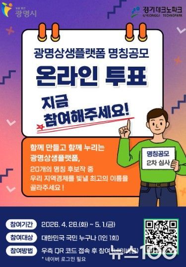 뉴스100 김동초 기자 | 광명시가 ‘광명상생플랫폼’의 최종 명칭 선정을 위해 온라인 투표를 실시한다.