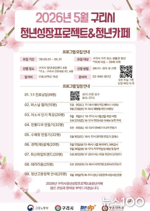 뉴스100 김동초 기자 | 구리시는 2026년 5월 한 달간 구리시 청년내일센터에서 운영되는 '청년성장프로젝트' 참여자를 모집한다고 밝혔다.