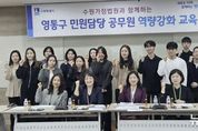 뉴스100 김동초 기자 | 수원시 영통구는 지난 25일, 영통구청 상황실에서 구청 및 12개 동 민원 담당 공무원을 대상으로 수원가정법원과 함께하는 역량 강화 교육을 실시했다. 이날 특별 초빙된 수원가정법원 박민숙 사무관과 유신임 행정관은 갈수록 복잡하고 다양해지는 가족관계등록사무를 개념부터 관련 법령까지 체계적으로 교육했으며, 업무처리 시 유용한 노하우 공유, 질의응답 등의 시간도 마련했다. 특히 실무에서 자주 접하는 기본적이고 중요한 사례 중심으로 민원 담당자들이 이해하기 쉽게 교육을 통해 실무의 어려움을 해소하고, 신속하고 정확한 업무 처리에 대한 자신감을 높였다. 장수석 영통구청장은“가족관계등록부는 국민의 신분과 정체성을 증명하는 유일한 공적 자료로, 직원들의 전문성 부족이 시민들의 불편으로 이어지지 않도록 수원가정법원과 함께 민원담당 공무원의 역량 강화에 최선을 다하겠다”고 밝혔다. 영통구는 앞으로도 직원들의 전문성과 자신감을 강화하여 수준 높은 민원행정 서비스를 실현해 나갈 계획이다. [뉴스출처 : 경기도 수원시]