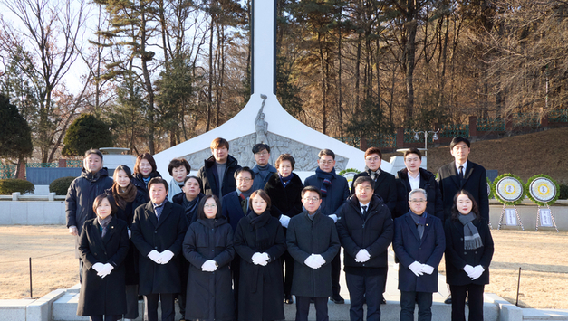 뉴스100 김동초 기자 | 김진경 경기도의회 의장(더민주, 시흥3)이 2일 ‘2026년 병오년(丙午年)’ 새해를 맞아 현충탑을 참배했다. 김 의장은 이날 오전 10시 시흥시 논곡동에 위치한 현충탑에서 묵념과 헌화·분향을 하며 순국선열 및 호국영령을 기렸다. 방명록에는 ‘거룩한 헌신을 받들어 경기도와 시흥의 눈부신 발전으로 보답하겠습니다’라는 메시지를 남겼다. 이날 참배에는 안광률 교육기획위원장, 장대석 의원, 이동현 의원, 김종배 의원 등 도의원과 함께 광복회, 대한상이군경회, 재향군인회 등 60여명이 함께 했다. 김 의장은 “새해를 맞아 순국선열들의 숭고한 희생을 다시 한번 기리며 경기도민의 더나은 삶을 위해 더욱 열심히 노력하겠다는 각오를 다졌다”라며 “오로지 도민만 바라보며 더 큰 책임과 각오로 나아가겠다”고 밝혔다. [뉴스출처 : 경기도의회]
