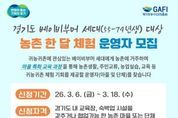 뉴스100 김동초 기자 | 경기도와 경기도농수산진흥원은 ‘경기도 베이비부머 농촌 한 달 체험’을 운영할 마을·단체 2곳을 오는 18일까지 모집한다. 경기도귀농귀촌지원센터의 심사를 거쳐 선정된 체험 마을·단체 한 곳당 5개 팀을 맡게 되며, 체험 운영 역량 강화를 위한 멘토 교육과 프로그램 참가자 1팀당 최대 200만 원의 운영비가 지원된다. 마을·단체는 귀농·귀촌을 준비하는 베이비부머 세대(1955~1974년생)가 한 달간 농촌에 거주하며 영농실습과 지역민 교류를 체험할 수 있도록 임시 주거지와 교육 프로그램을 제공해야 한다. 귀농·귀촌 교육 및 숙박이 가능한 도내 농촌 마을·단체라면 경기도귀농귀촌지원센터 누리집에서 내려받은 신청 서식을 전자우편으로 제출해 신청할 수 있다. 기타 자세한 사항은 누리집 공고문이나 전화 문의를 통해 확인 가능하다. 최창수 경기도농수산진흥원장은 “베이비부머 세대가 막연한 귀농·귀촌이 아닌, 충분한 체험과 준비 과정을 거쳐 안정적으로 정착할 수 있도록 지원하겠다”며 “역량 있는 마을의 많은 참여를 기대한다”고 말했다. [뉴스출처 : 경기도청]