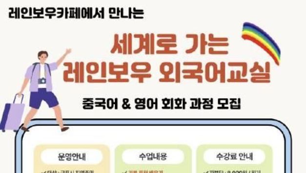 뉴스100 김동초 기자 | 군포시가족센터는 군포시민을 위한 실생활 외국어 회화 프로그램 ‘세계로 가는 레인보우 외국어교실’을 오는 4월부터 레인보우카페 교육실에서 운영한다. 레인보우카페는 결혼이주여성이 바리스타로 활동하는 공간으로, 단순 휴식 공간을 넘어 시민들이 배우고 소통하는 열린 커뮤니티 공간으로 자리매김하고 있다. 이번 프로그램은 시민들이 언어학습을 통해 자연스럽게 교류하며 지역사회 관계망을 형성하는 데 기여할 것으로 기대된다. 수업은 원어민 강사와 함께하는 회화 중심 교육으로, 해외여행과 일상생활에서 활용 가능한 외국어 능력 향상을 목표로 한다. 중국어와 영어 두 과정으로 진행되며, 공항·숙소·식당 등 상황별 여행 회화와 현지 문화 이해를 함께 다룬다. 운영 기간은 4월부터 6월까지 3개월간 총 24회이며, 중국어는 매주 화요일, 영어는 매주 목요일 오전 10시부터 회당 90분간 진행되며, 수강료는 자부담이다. 박성희 센터장은 “원어민과 직접 말하며 배우는 회화 중심 수업을 통해 주민들의 외국어 자신감을 높이고, 레인보우 카페를 지역 교육·문화 공간으로 활성화해 나가겠다”고 밝혔다. [