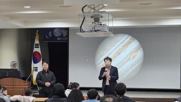 뉴스100 김동초 기자 | 군포시 대야도서관 누리천문대에서 지난 3일 정월대보름을 맞아 ‘2026년 정월대보름 개기월식 특별관측회’가 열려 시민들의 뜨거운 관심 속에 성황리에 마무리됐다. 이번 행사는 정월대보름이라는 특별한 날, 평소 접하기 어려운 천문 현상인 개기월식을 시민들이 직접 관측하고 체험할 수 있도록 마련됐다. 행사 초반에는 다소 구름이 끼어 우려를 낳기도 했으나, 곧 구름이 걷히며 달이 지구 그림자 속으로 완전히 숨었다가 다시 서서히 제 모습을 찾아가는 경이로운 전 과정을 선명하게 관측할 수 있었다. 현장에는 하은호 군포시장이 깜짝 방문해 시민들과 함께 달의 변화를 지켜보며 천문우주과학에 대한 깊은 애정을 나타냈다. 하 시장은 관측에 참여한 시민들에게 “우리 아이들에게 별과 우주를 통해 꿈과 희망을 심어주는 것만큼 중요한 일은 없다”며 “앞으로도 과학 문화가 시민들의 일상 속에 자연스럽게 스며들 수 있는 환경을 조성하는 데 지원을 아끼지 않겠다”고 전했다. 이번 관측회는 개기월식뿐만 아니라 다채로운 프로그램으로 시민들에게 풍성한 즐거움을 선사했다. 천문학 작가인 김지현 씨의 초청강연을 시작으로, 누