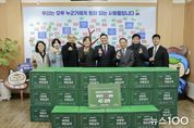 뉴스100 김동초 기자 | 시흥시 정왕2동 행정복지센터에 지난 12월 23일 시화공구상가 사업협동조합과 본이되는 교회가 방문해 연말을 맞아 어려운 이웃을 위해 잇따라 나눔을 실천하며 지역사회에 온정을 전했다. 시화공구상가 사업협동조합은 지난 12월 23일 정왕2동 행정복지센터(동장 정연임)를 방문해 지역 내 취약계층을 돕기 위한 쌀 10kg 10포를 전달했다. 시화공구상가 사업협동조합은 안산과 시흥을 대표하는 종합산업용품단지인 시화공구상가단지를 관리하는 조합으로, 매년 기부와 사회공헌 활동을 이어가며 지역사회의 모범이 되고 있다. 오근호 시화공구상가 사업협동조합 이사장은 “작은 정성이지만, 주변의 어려운 이웃들이 따뜻한 한 끼를 드시는 데 도움이 되길 바란다”라며 “앞으로도 지역사회와 함께 성장하며 지속적인 나눔을 통해 사회적 책임을 다하겠다”라고 밝혔다. 정왕2동에 있는 본이되는 교회도 정왕2동 행정복지센터를 찾아 국제구호개발(NGO) 단체인 (사)한국국제기아대책기구와 함께 준비한 희망상자 40개를 기탁하며 이웃사랑을 실천했다. 희망상자에는 햇반, 미역, 김 등 생활에 필요한 식료품과 생필품이 담겼으며, 교인